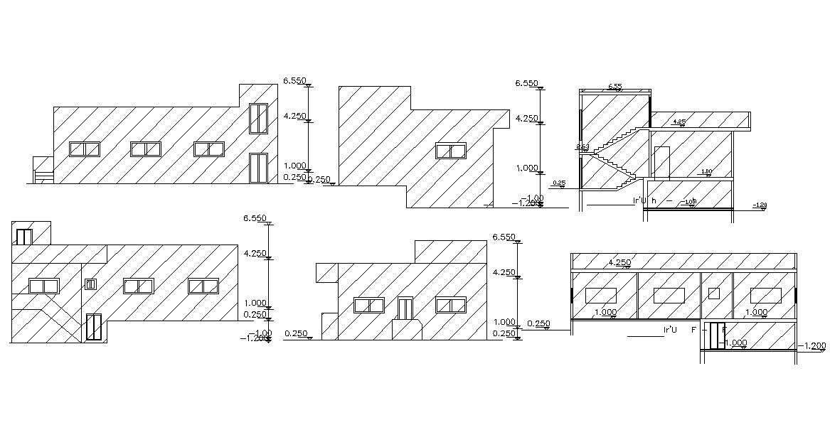 The one storey elevation layout include floor level, plinth level, door, window and hatching marking. download AutoCAD file.