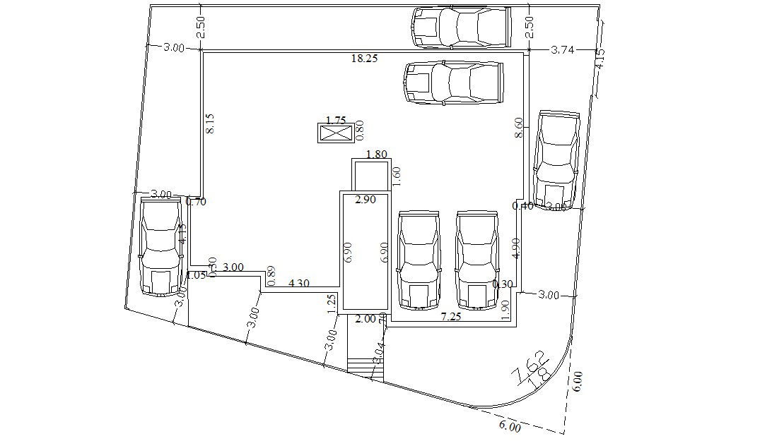 The modern architecture drawing a include a car parking space, dimension details, boundary details and other more details. download CAD file.