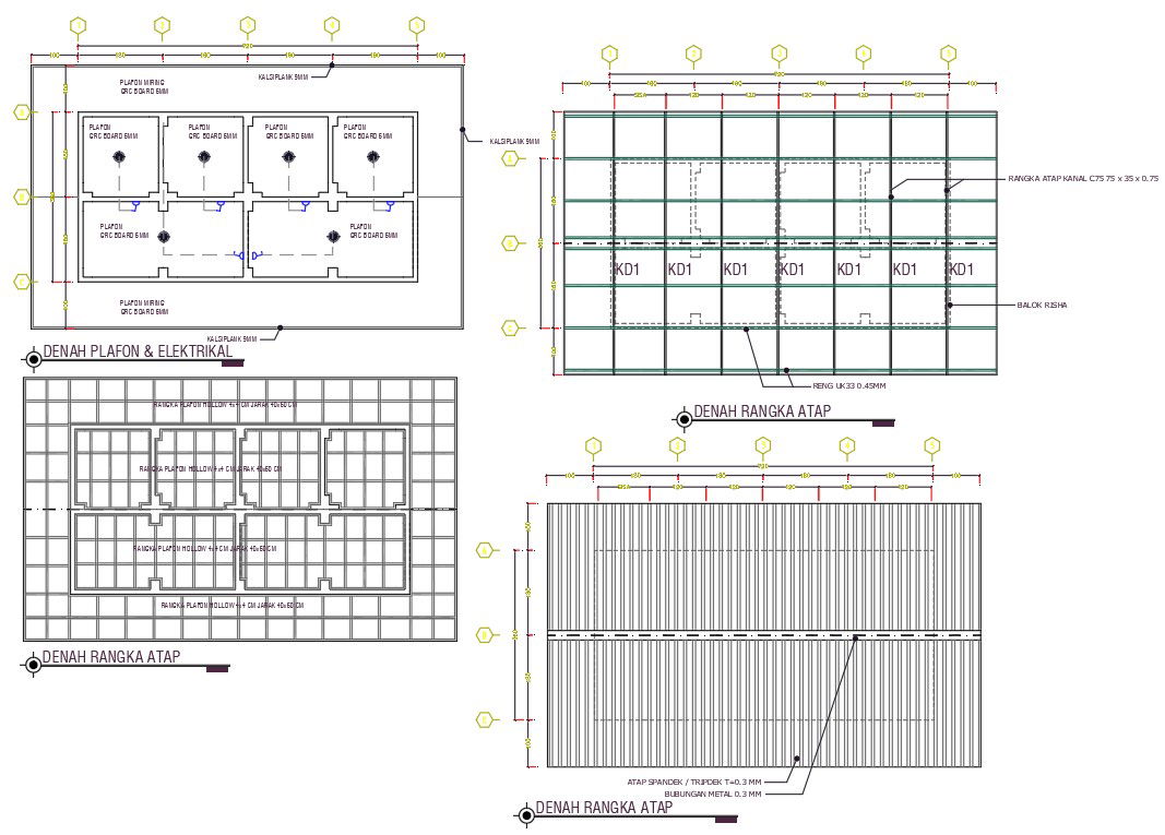 Download free DWG file of public toilet plan with centre line plan and dimension detail that shows top view roof plan, floor plan, and electrical layout design.