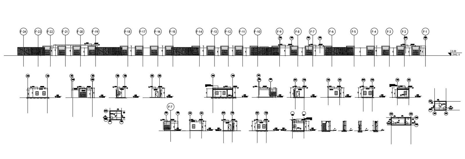 2D CAD drawing of residence house building all side elevation design with centre line detail and compound wall design with dimension detail. download house with compound wall design DWG file.