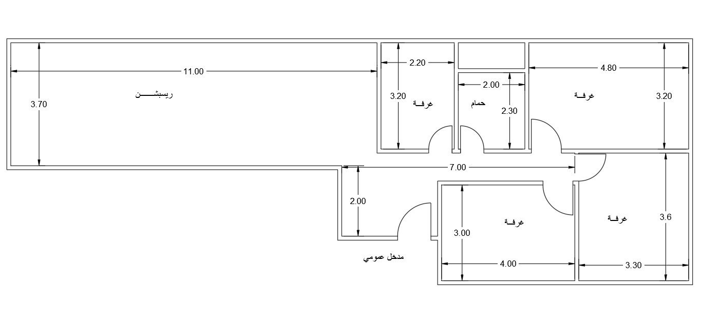 The residence house layout floor plan drawing with dimension detail and a number of doors marking detail. download house layout plan DWG file.