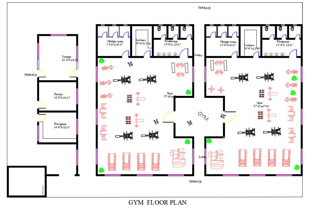 Gym Floor Layout DWG File with CAD Drawing for Efficient Design