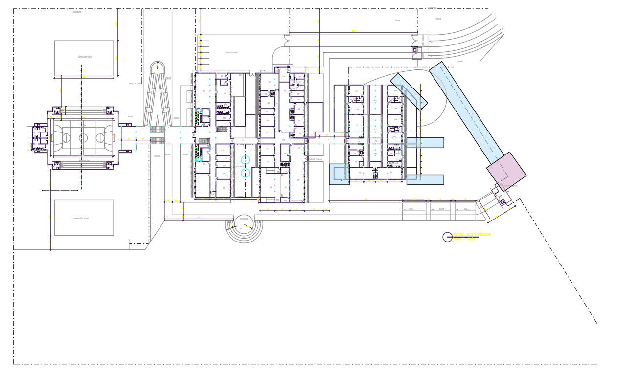 2d CAD drawing of clubhouse master plan drawing that shows swimming pool, sports game ground of basketball, main entry and compound boundary wall design. download clubhouse layout plan design DWG file.