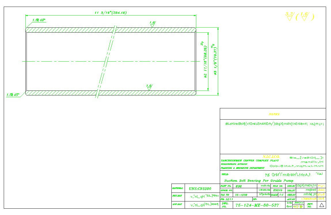 Suction Bell Bearing For Pump drawing with plan and all dimension mentioned in drawing.
