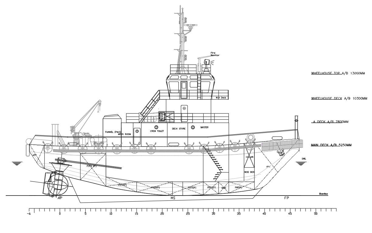 2d CAD drawing of the ship the cross-sections from the forward part of the hull back to the midsection. download ship design free DWG file