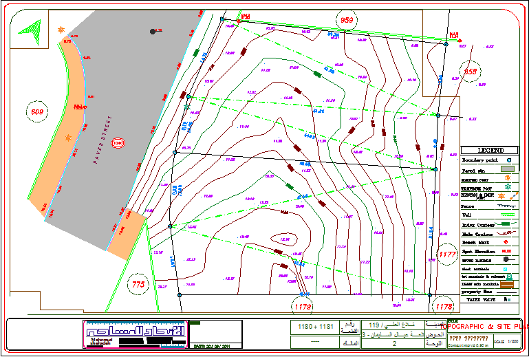 Contour plan is also say Topography and site plan.this site plan including all detail like Boundary point, Electric post, Telephone post, Electric Light post, Fence, Wall ,Bench mark, Sewer Manhole, elect. manhole, tel manhole & cabinet, etc