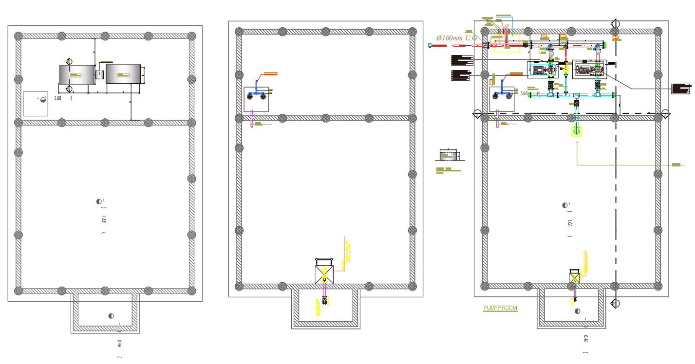 The industrial factory floor layout plan drawing that shows the boiler plant, pipe connection and machinery detail. download factory industrial plant drawing DWG file.