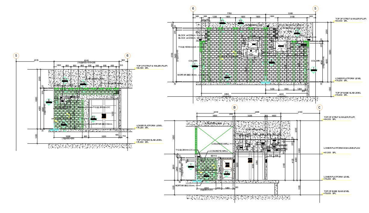 AutoCAD drawing of brick wall masonry elevation design burnt brick masonry needs plastering and dimension detail. download DWG file of a brick wall elevation design.