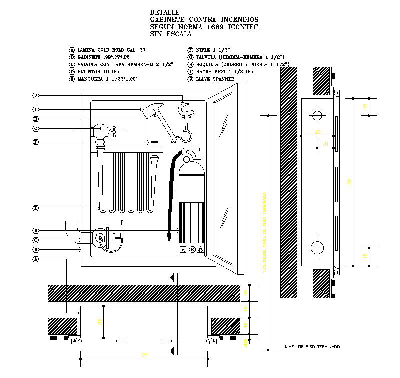 Cabinets against Fire. floor level finished, 1.75 from finished floor level,