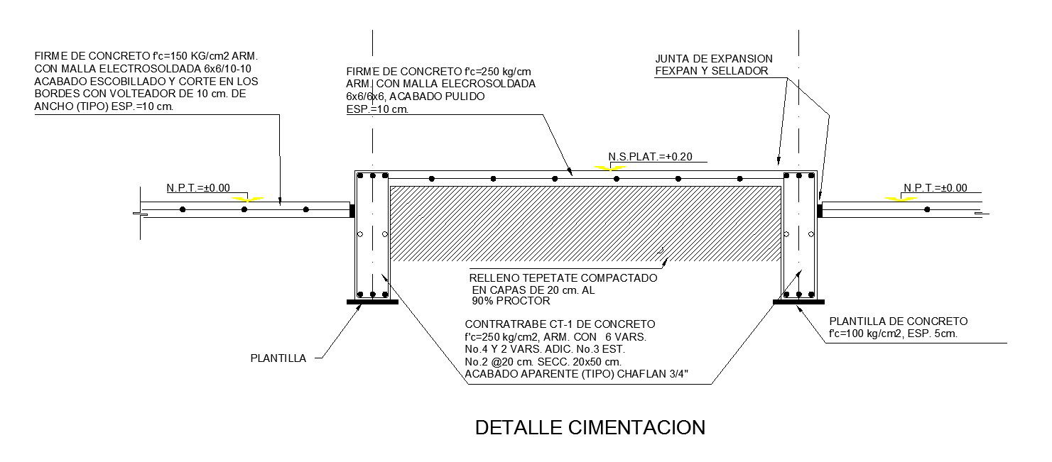 Detail Foundation Level & layer. expansion meeting fexpan and sealer, frame de concreto f'c=150 kg/cm2 arm,