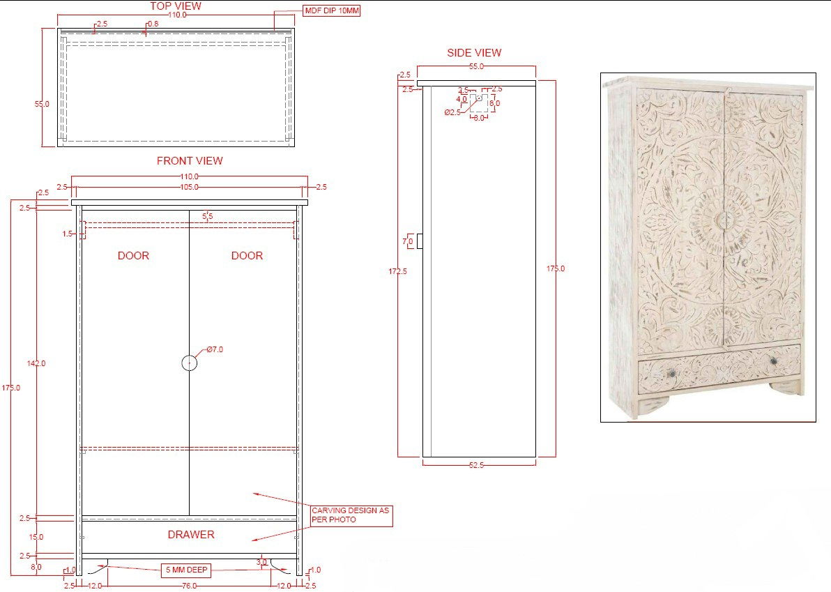 Download free PDF file of closet cupboard drawing includes op view plan, side elevation and front elevation design with tradition design.