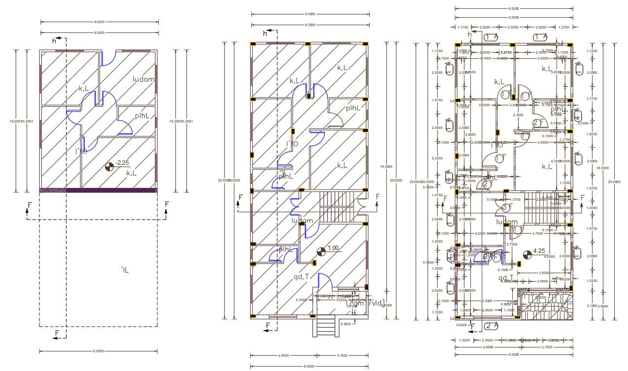 This is 2 BHK and 3 BHK residence house floor plan drawing that shows all dimension detail, column layout and number of door window marking. download 1755 square feet house floor plan design DWG file.