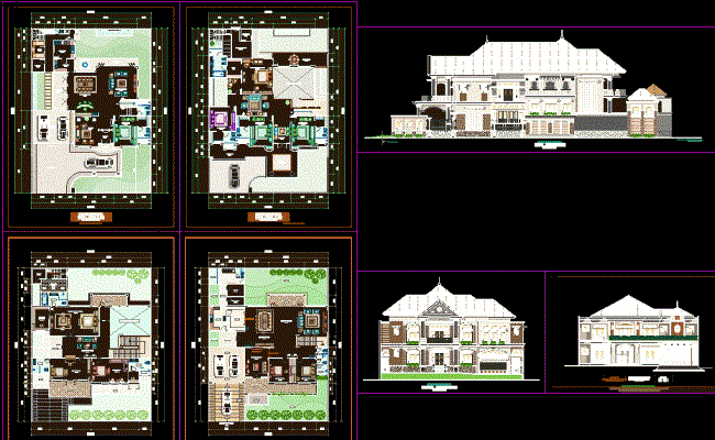 Modern Bungalow AutoCAD File with Floor Plans and 2D Elevation Drawing