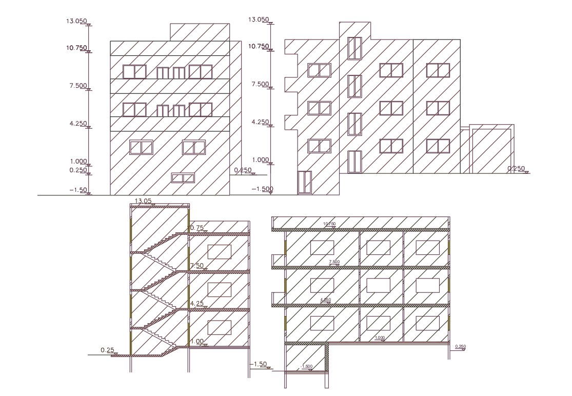 3 Storey Apartment Building Sectional Elevation Design CAD File