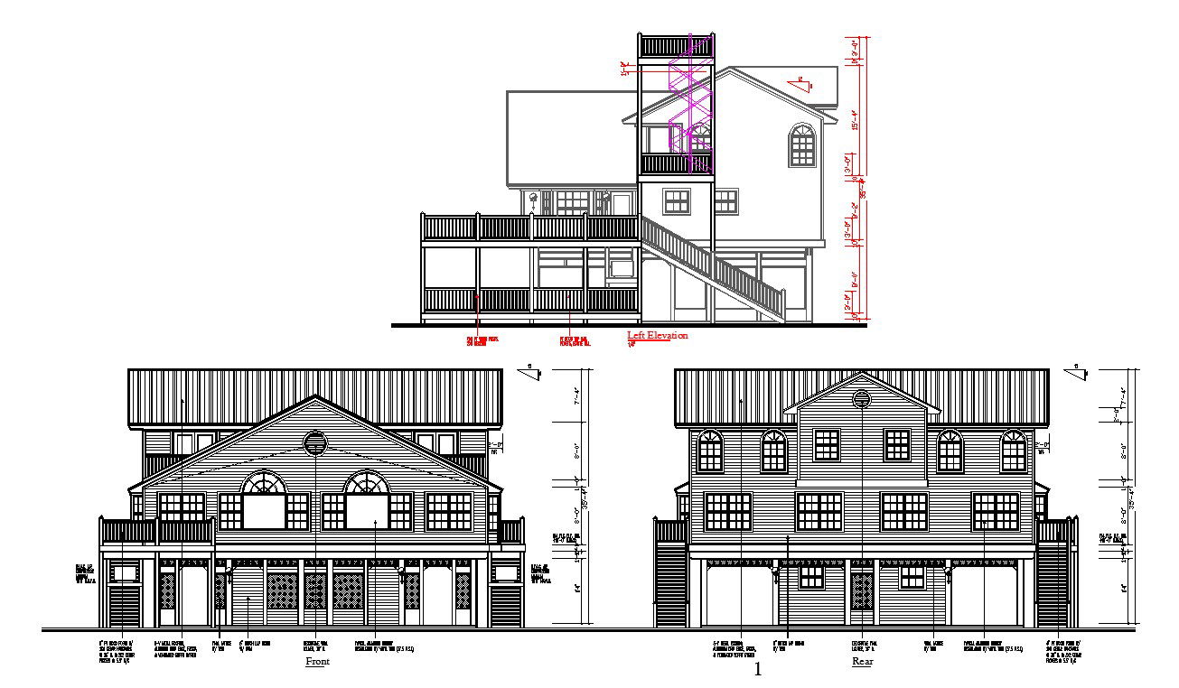 Bungalows Elevation detail in this DWG file & 3 side elevation view show .