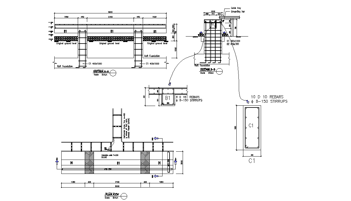 Raft foundation Steel bar details.Download Autocad 2D DWG file.