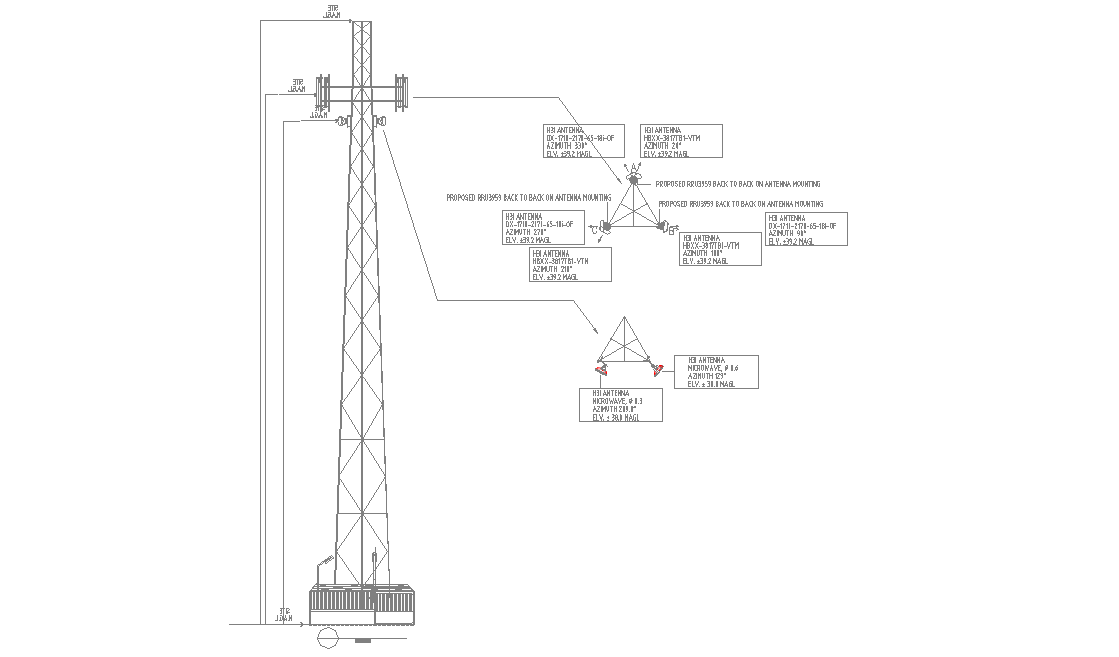 cell network tower Elevation design and antenna details,download the AutoCAD dwg file.