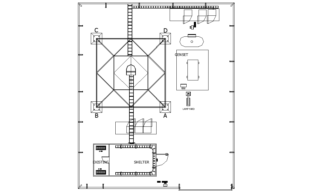 The AutoCAD Drawing file contains an electrical machine room layout design. Inside the electrical machine room Shelter room, one Genset with lamp yard is available in the drawing. Four sides fixed foundation available in the corners. To know more details download the DWG file.