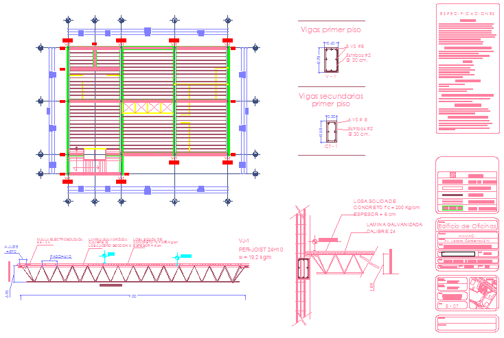 This office building plan with structure drawing.Beam and column arrangement,reinforcement bar detail drawing,Section,plan and beam to beam center line plan available in this file.