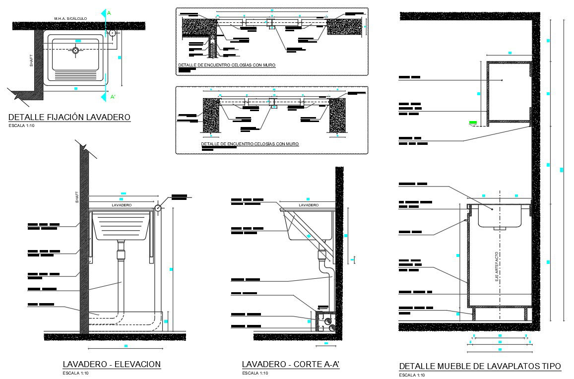 Download free DWG file of wash basin installation sectional elevation design and top plan that shows wastage and drainage water pipe line detail.