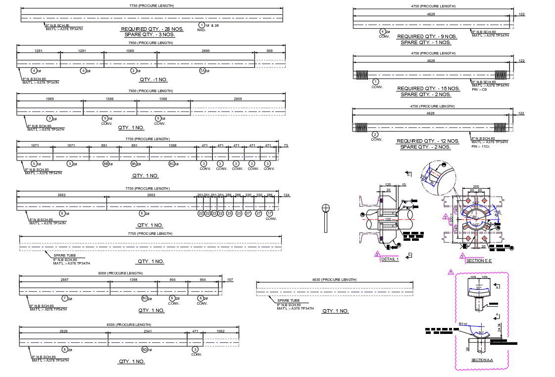 Free Download DWG file of coil cutting industry plant, procure length with different size and spare tube design with dimension dimension detail. also has coil cutting detail and section drawing.