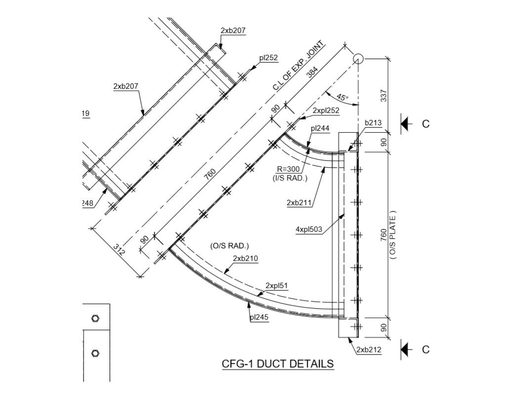2D CAD drawing of expansion joint duct detail of plumbing with elbow pipe line detail section view with naming and denotation information and plate detail. download plumbing expansion duct drawing free DWG file.