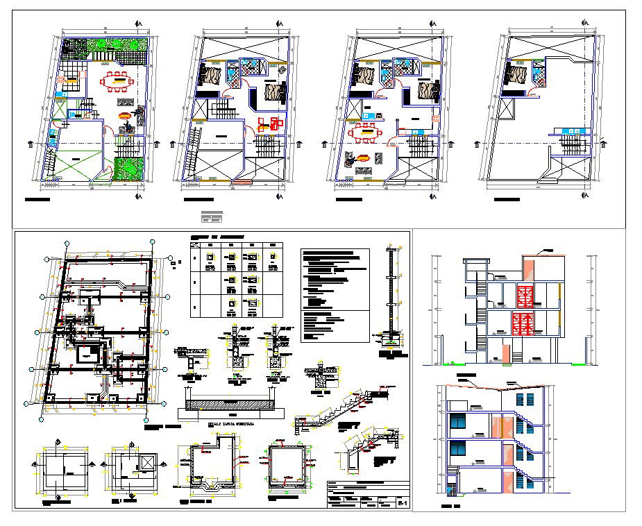 This Modern House Project Detail in foundation plan lay-out, elevation detail, section detail, structure detail.