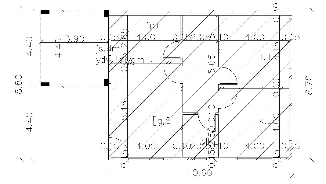 10.60 X 8.70 Meter Residential House Floor Plan CAD File