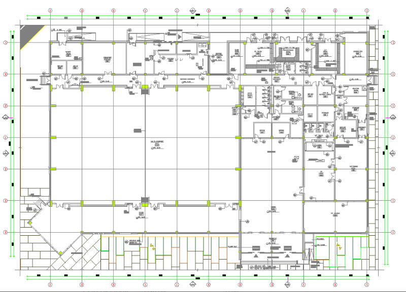 The Autocad DWG file shows the details of the Development of the ISF camp Office building, In the floor plan, Kitchen area, dishwasher collection area, furniture storage, Ice station, cold room, Electric room, transformer room, LV room, staff toilet, office room, Ups and battery room, VIP dining hall are mentioned. Download the Dwg file to get this drawing.