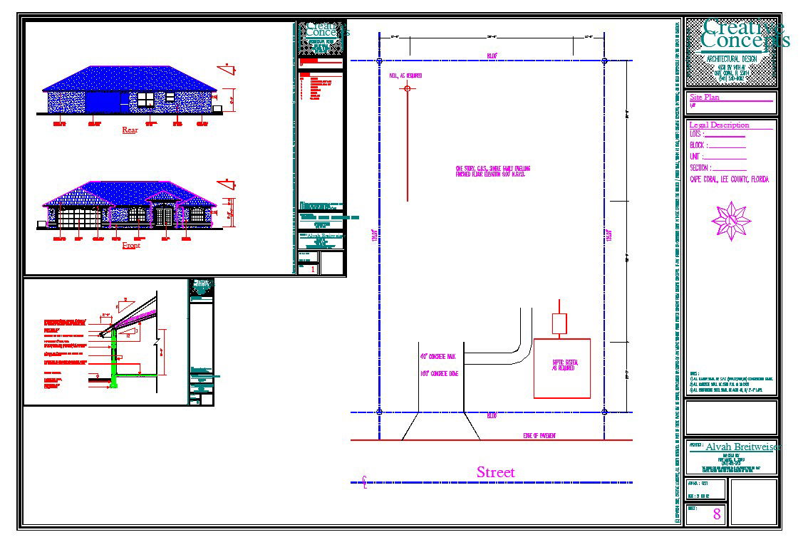 this ONE STORY, C.B.S., SINGLE FAMILY DWELLING, FINISHED FLOOR ELEVATION 9.00' N.G.V.D. SEPTIC SYSTEM, AS REQUIRED. etc detail include.