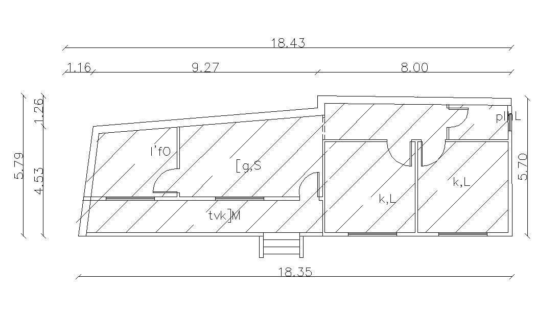 18.43 X 5.79 Meter Residential House Floor Plan CAD File