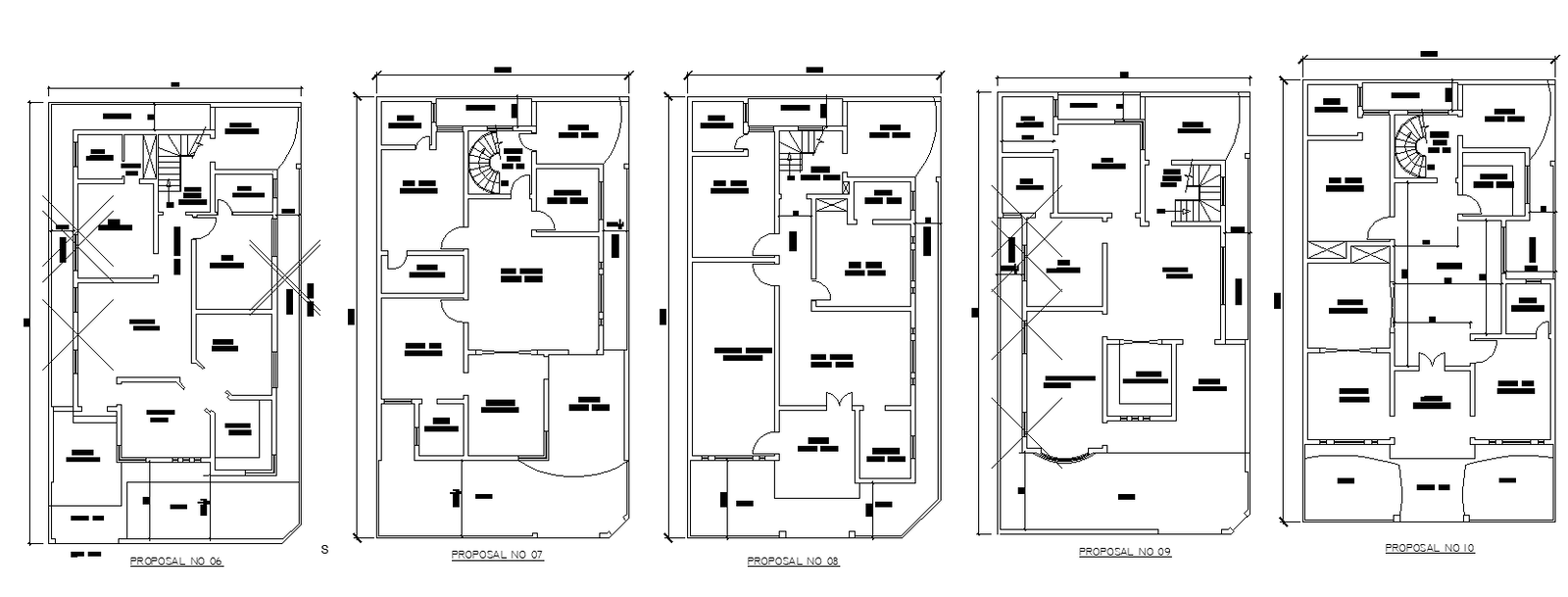40'X70' Five Various ideas of 2BHK House plan AutoCAD DWG file,Download the DWG file.