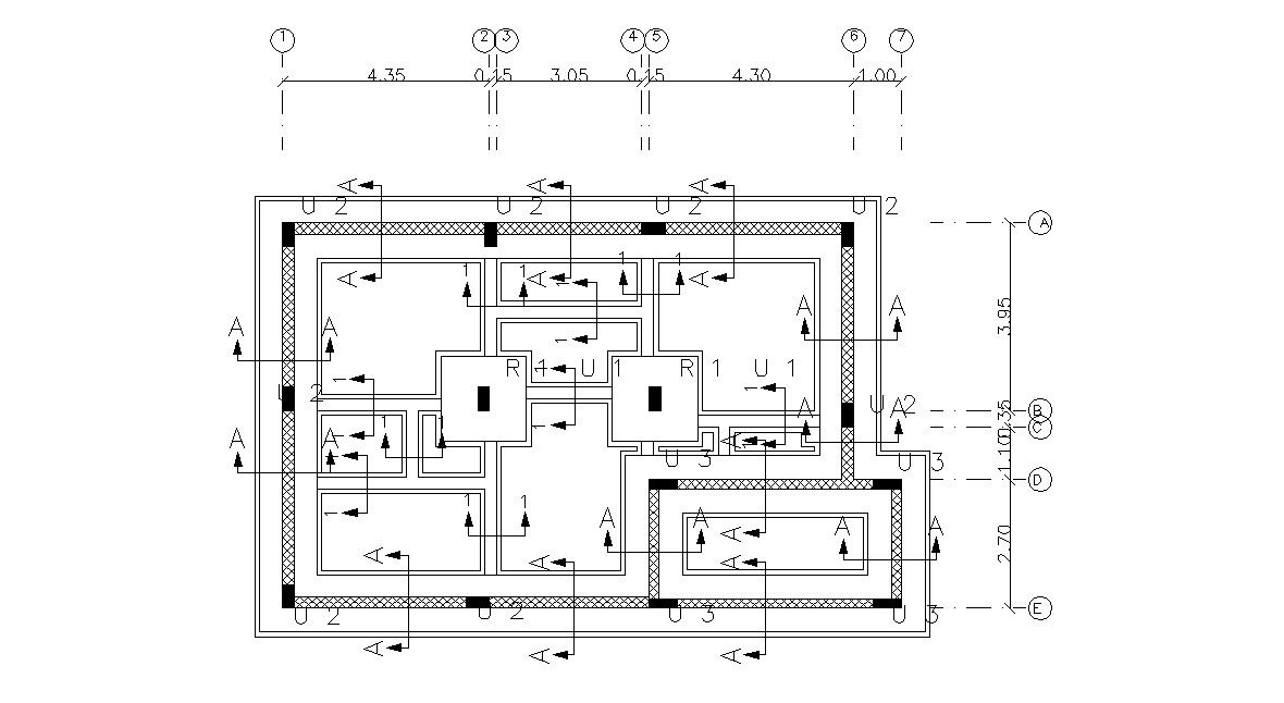 2d drawing include column and beam details, section line, centerline with dimension details, wall details and other details. download CAD foundation layout file.