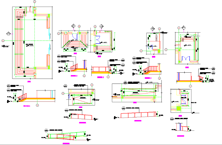 Stainless steel Staircase Section and Elevation available in this drawing file. Stainless steel handrail, a natural engineered stone stair is mentioned in the section plan. different types of sections and Elevation designs also available in this drawing file. Download the file.