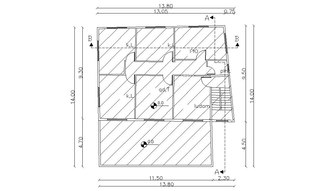 The architecture drawing ground floor plan include 3 bedroom, kitchen, washroom, living area, toilet. this is floor plan is 13.80 x 14.00 meter download AutoCAD format.