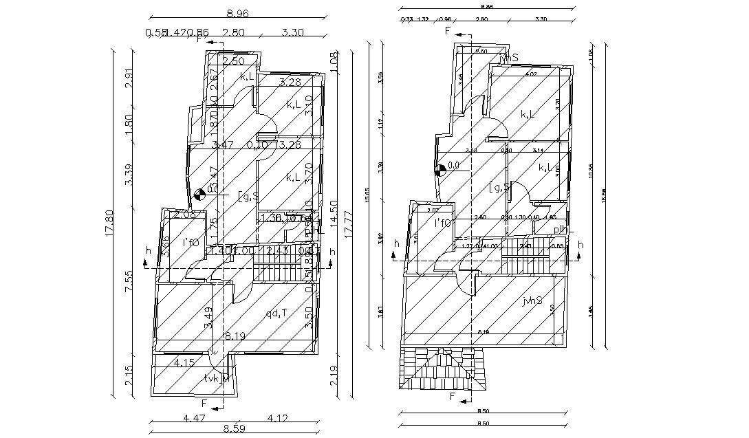 17.80 X 8.96 Meter Residential House Floor Plan CAD File