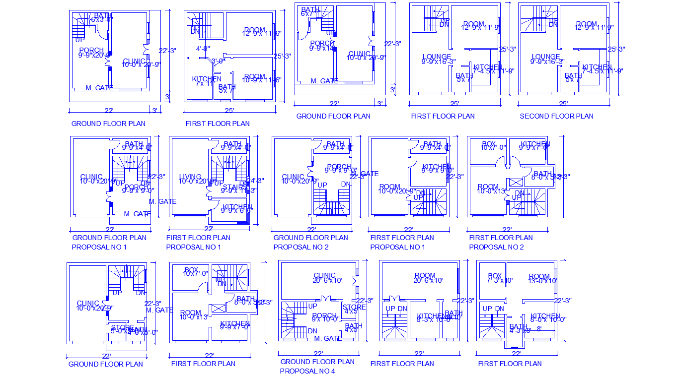 22'X22' seven different types of single BHK House plan also clinic plan available AutoCAD DWG file.