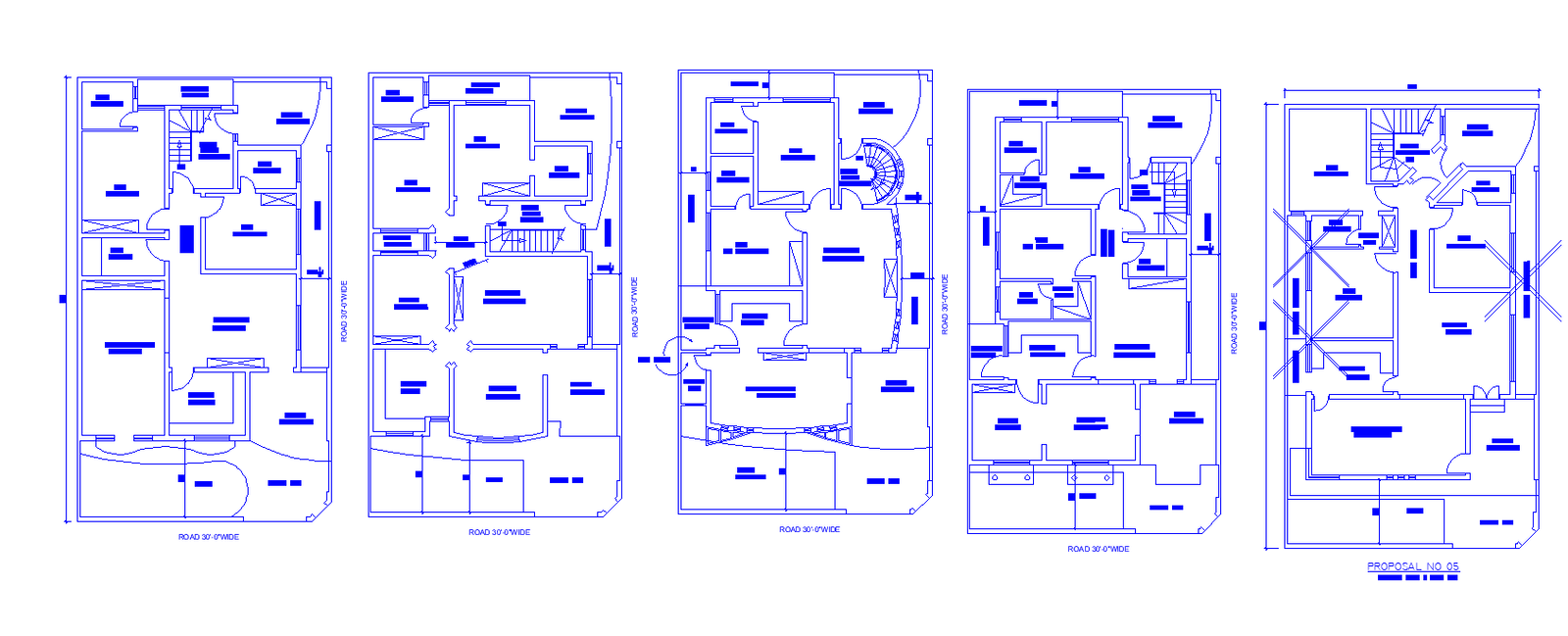 40'X70' Five Various types of 2BHK House plan AutoCAD DWG file.