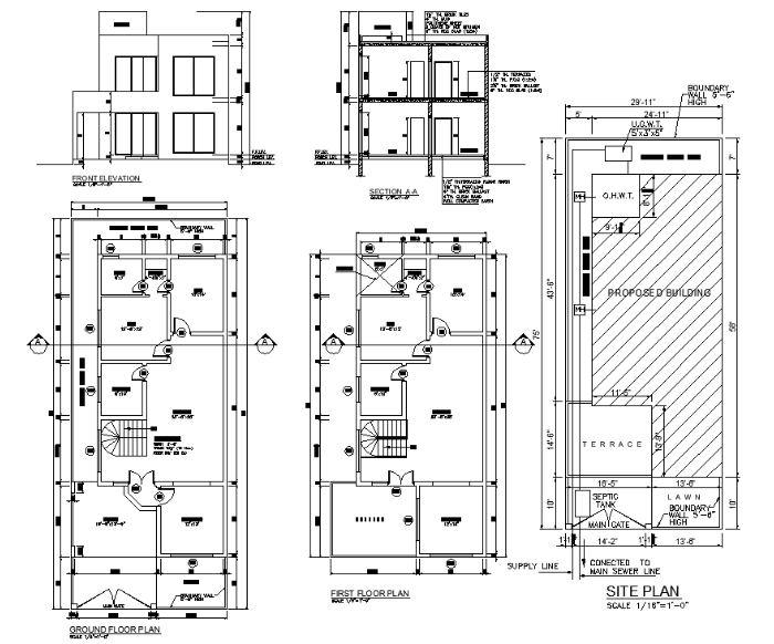 30'X75'Two-bedroom Spacious G+1House plan with section and elevation AutoCAD DWG file.