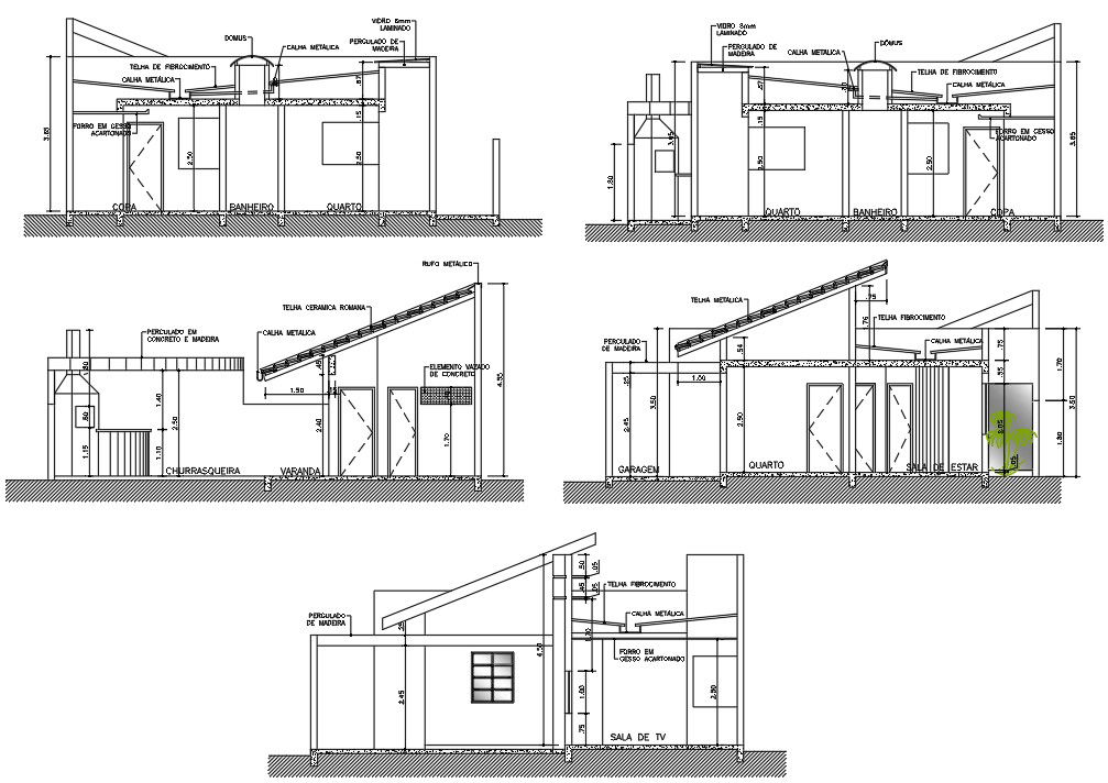 Sectional details of the 2BHK G+1 house plan AutoCAD DWG file. In this Plan the Ground floor having a master bedroom with an attached toilet, Children's bedroom with attached toilet, Drawing room, Kitchen, Dining, TV Lounge, lobby, porch, and Lawn are available. On the first floor, rooms are also similar to the ground floor. The staircase is available inside the house. Section details of the house given in this drawing file. Download the AutoCAD Drawing file.