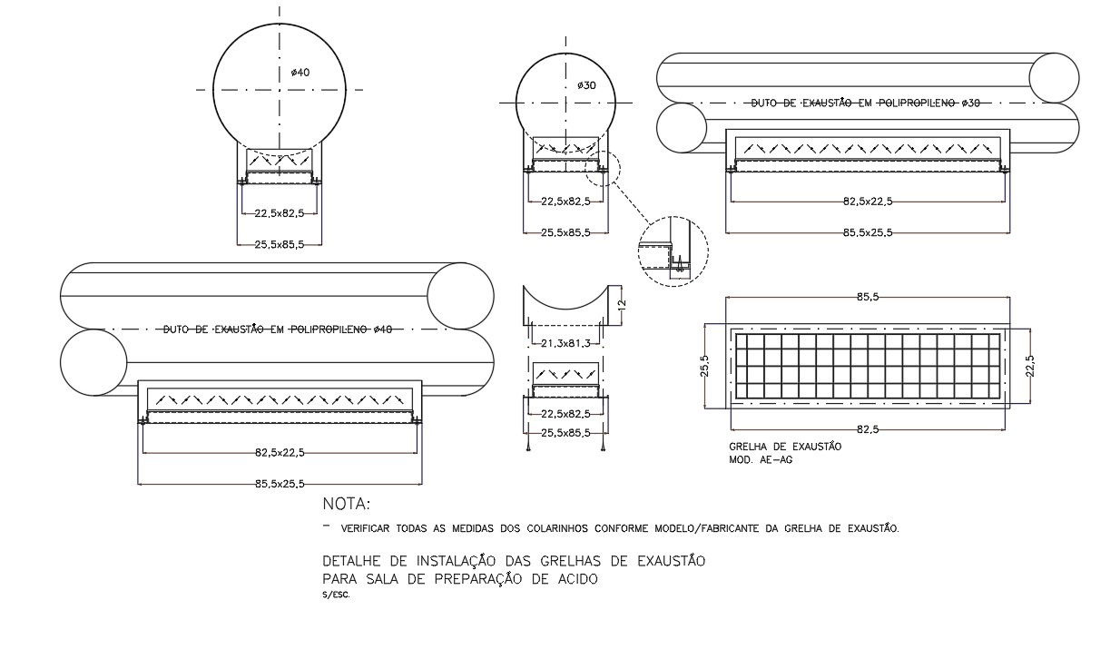 Detail of the installation of the exhaust grills for the acid preparation room that lead-acid batteries release hydrogen gas that can be potentially explosive detail in AutoCAD format.