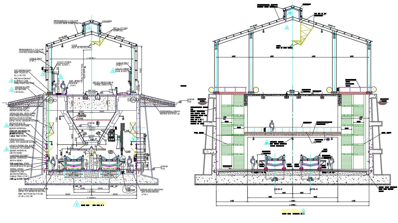 The coal crushing industrial plant section drawing that shows primary coal station are most suitable for crushing coal has intelligent electrical system, remote monitoring system, and weighing and loading system. download coal crushing plant section design DWG file.