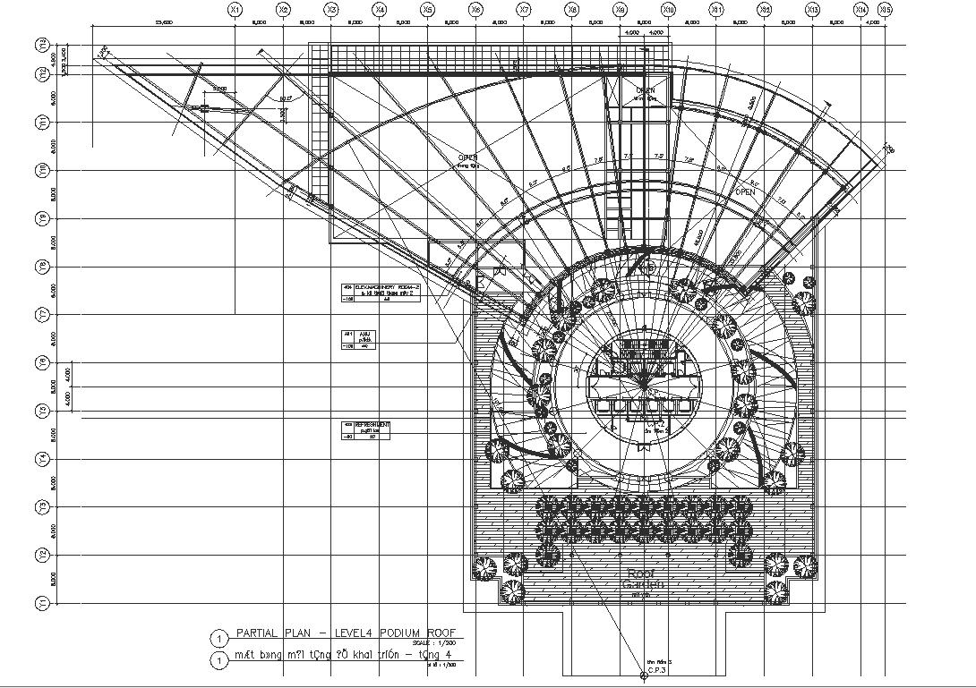 CAD Drawing file Having the details of the Partial floor plan and section design of the Podium roof.