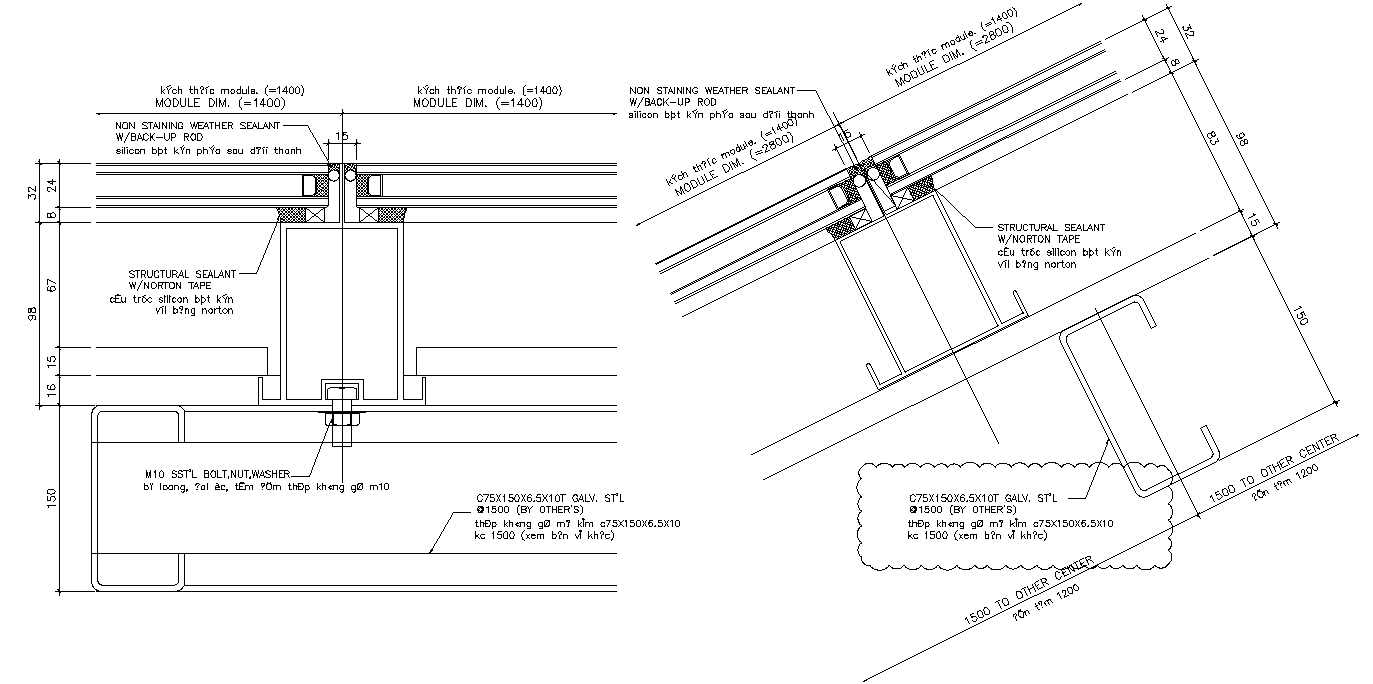 Exterior wall detailed Partial section details are given in this drawing file. Non-staining weather sealant, Structural sealant, water base paint,heat-strengthened glass, insulation and bolt, nut connection details are mentioned in this drawing. A brief explanation and the dimensions are given in this diagram. Download the DWG file.