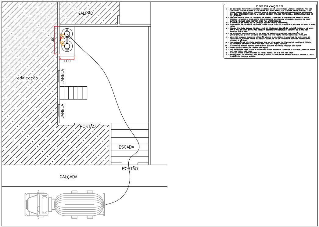 2d CAD drawing of duel and gas pump station with tank design which consist transportable containers contained in shelters with at least side walls and coverage, a minimum distance of 1.50 meters. download free DWG file of fuel and gas station design.