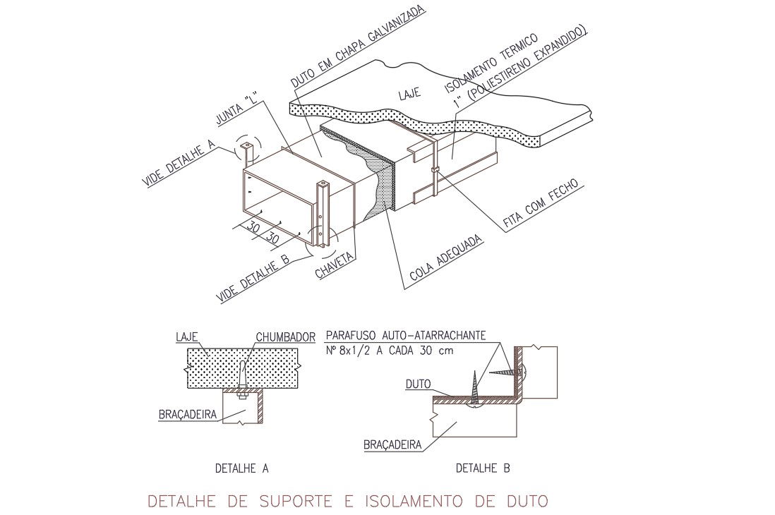 Download free DWG file of duct insulation installation and support detail galvanized sheet duct. also has ahe air duct insulation foam material is processed self-tapping screw with isometric elevation design. download duct installation system design AutoCAD file.