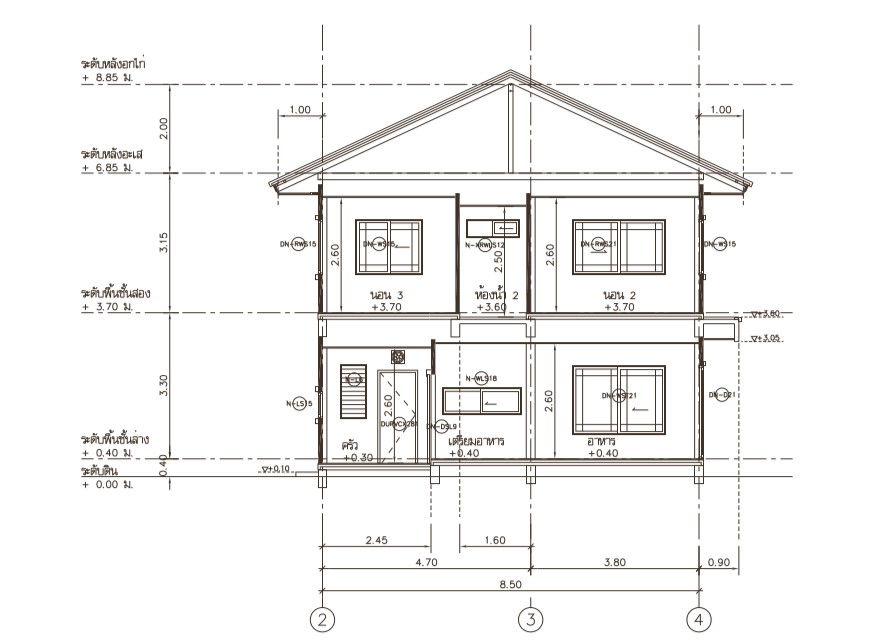 Drawing file showing the detailed plan of the 8.45 meter height G+1 house Side elevation. Download Autocad DWG file.