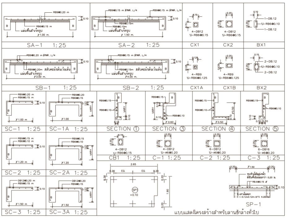 The AutoCAD drawing file shows the details of the beam section plan. various types of the section are given in this drawing file. Reinforcement rebar details are given in this drawing file. The scale is given in the ratio of 1:25. The sectional plan is clearly mentioned with dimensions in this drawing file. Download the file.