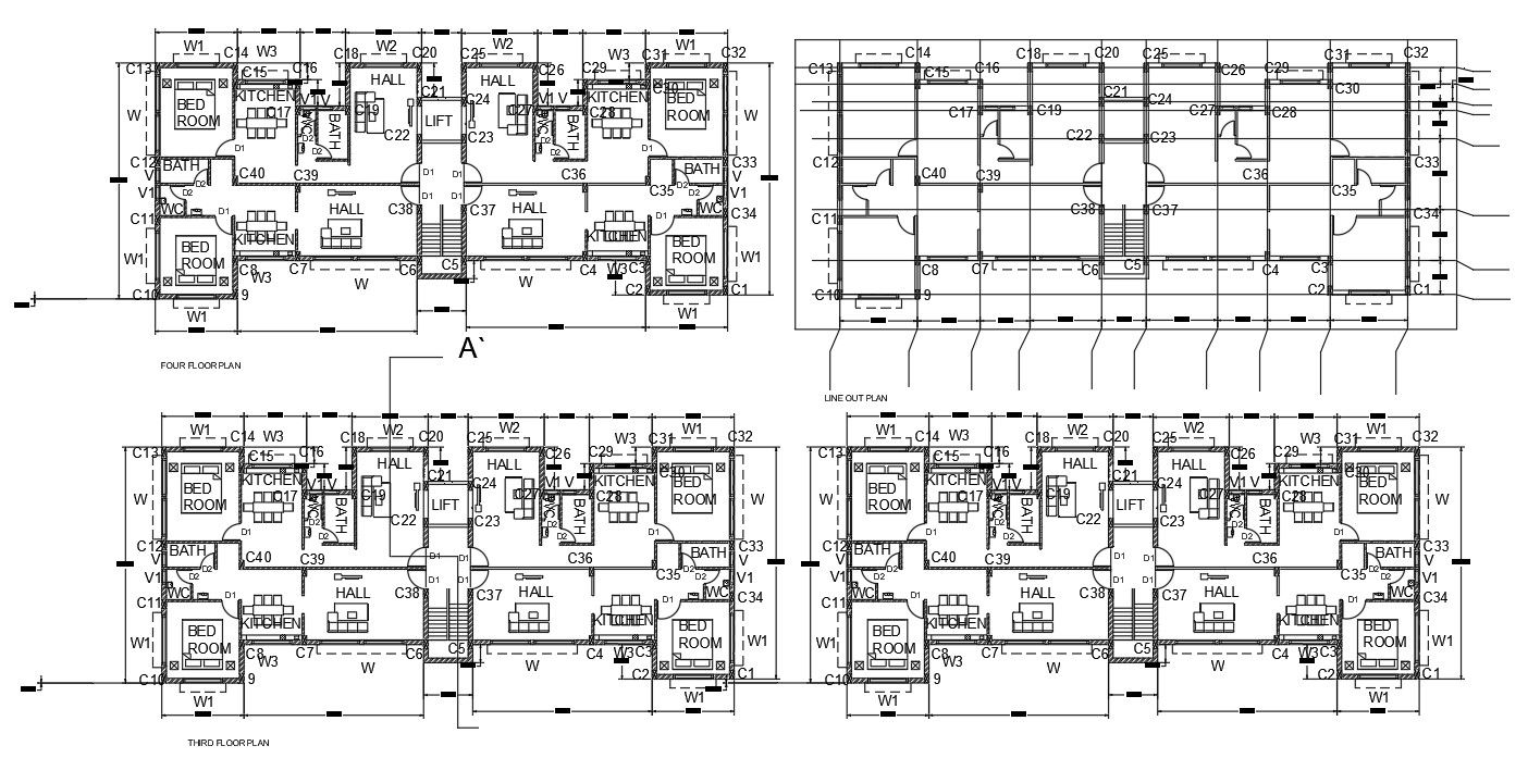 1 Bedrooms Apartment Cluster Plan AutoCAD File