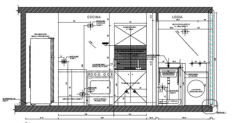 The modular kitchen interior front elevation design that shows microwave oven, sink, dish washer, 4 burner gas stove, refrigerator, and cupboard under platform. download modular kitchen interior design front view elevation drawing DWG file.